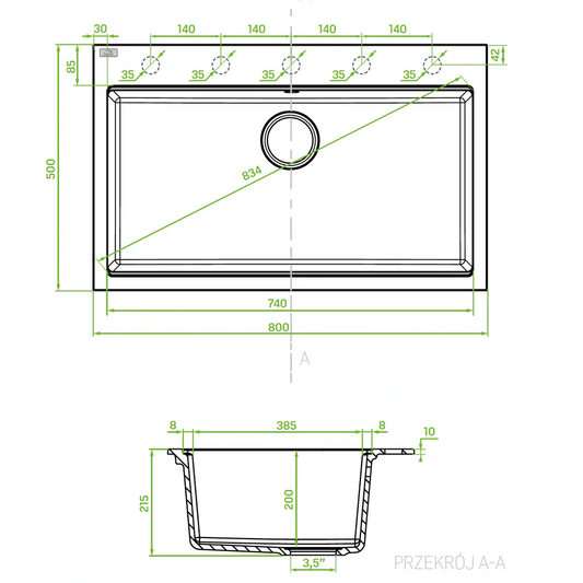 Granite Sink 1 Bowl 800mm - Black